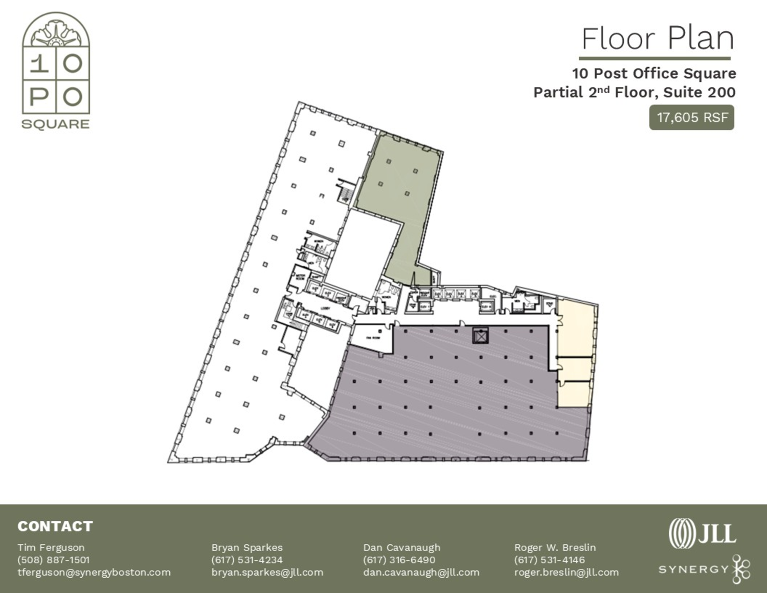 10 Post Office Square is a landmark 14-story office building located in the epicenter of Boston’s Financial District, adjacent to Post Office Square Park. This trophy office building was built in 1924 and renovated by Synergy in 2017, and again in 2025, the most recent major repositioning delivered a full rebranding of the asset. Upgrades include a new lobby & entrance and a full tenant-only amenity floor that features a fitness center with full-service locker-rooms & showers, a conference & training center, a luxurious tenant lounge and multiple new restaurants & entertainment concepts.